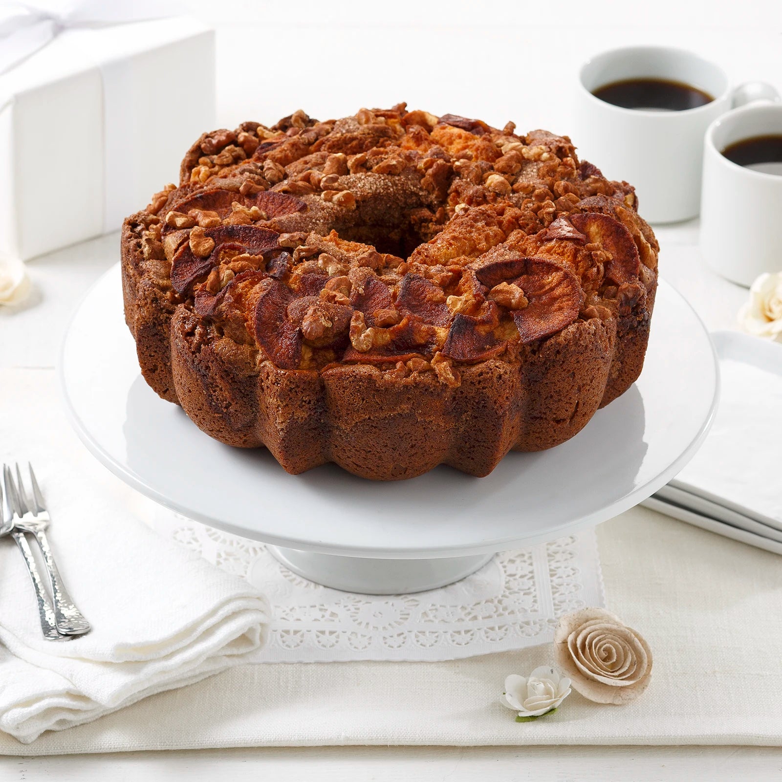 A delicious homestyle twist on the classic coffee cake! Cinnamon streusel, fresh walnuts, and Granny Smith apples make the ultimate flavor trifecta. Serve cold, or try it warmed with ice cream a la mode.
