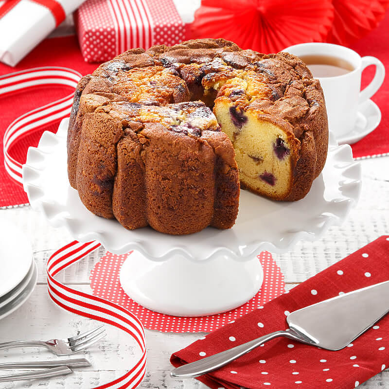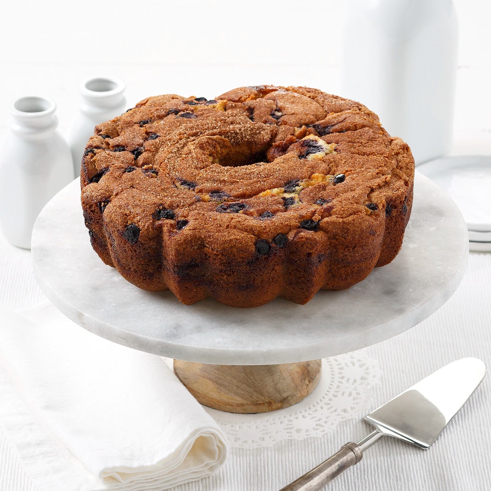 Savor in the classic flavor of blueberry coffee cake, baked with an abundance of blueberries folded into the batter for a burst of sweetness in every bite. A touch of pure New England maple syrup enhances the rich, homemade taste that makes this a timeless and beloved coffee cake flavor!