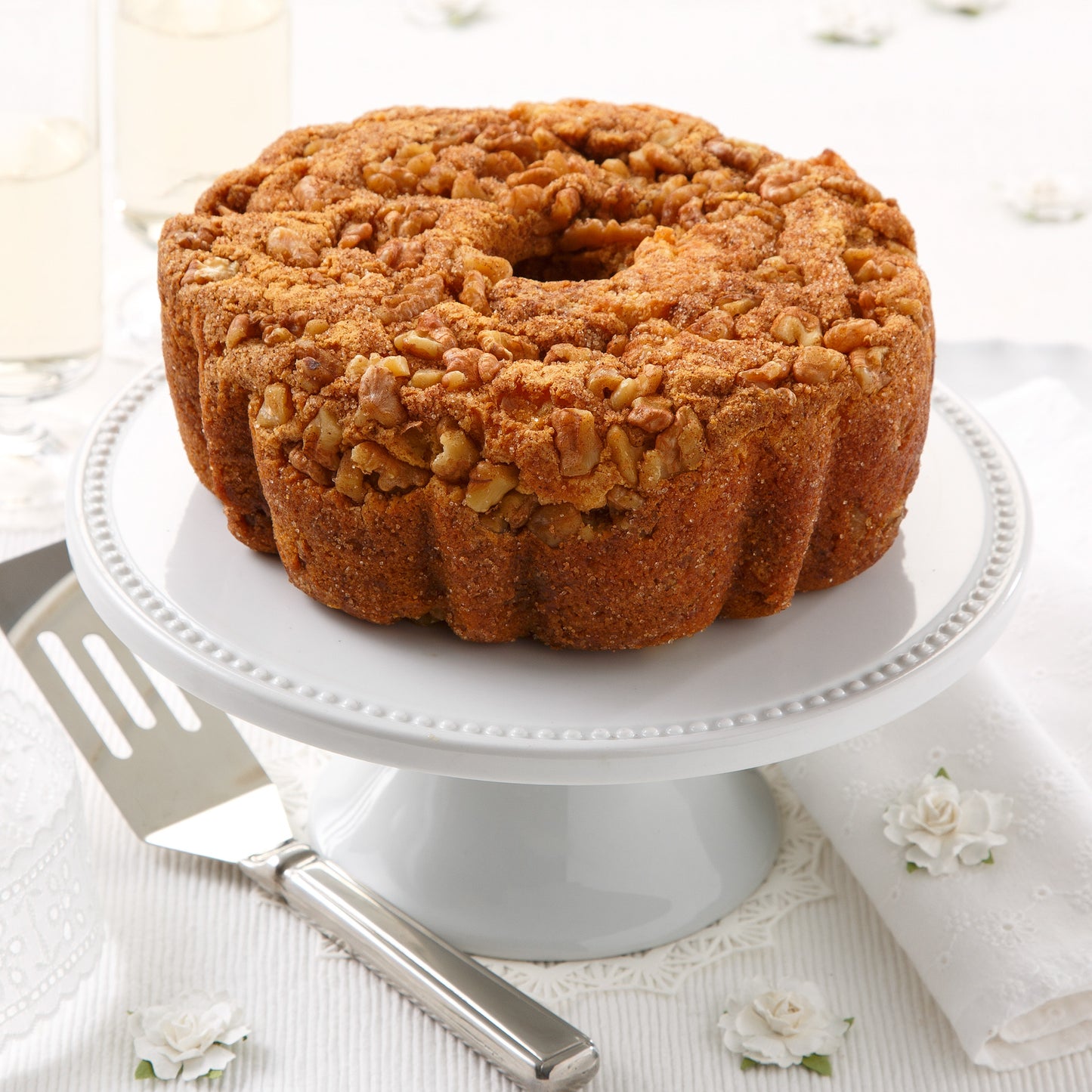 It's a timeless classic for a reason! Made with pure bourbon vanilla for rich flavor and sour cream for perfectly moist texture, this cinnamon coffee cake is topped with fresh walnuts and finished with a fragrant cinnamon streusel. Every bite is full of the comforting, nostalgic flavor of a true classic!