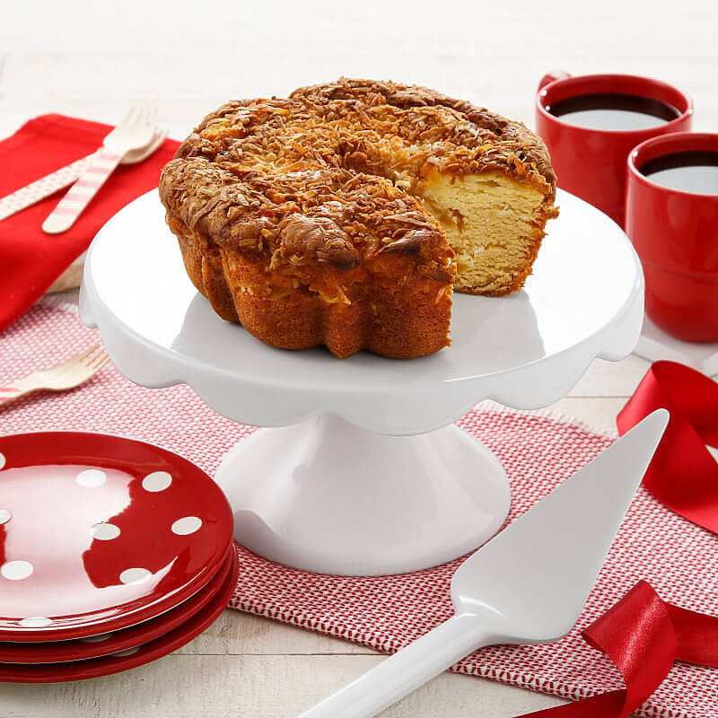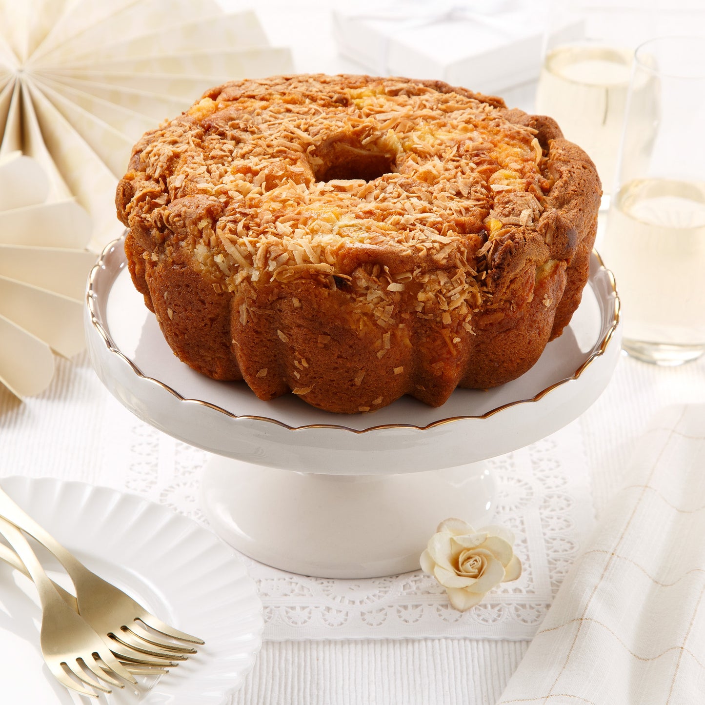 Coffee cake with a tropical twist! This cake combines tender coconut flakes and sweet pineapple chunks, baked together to create a luxuriously moist coffee cake with delicious fruity flavor in every bite.